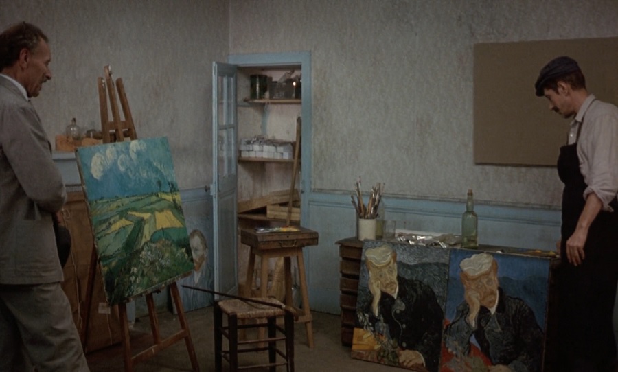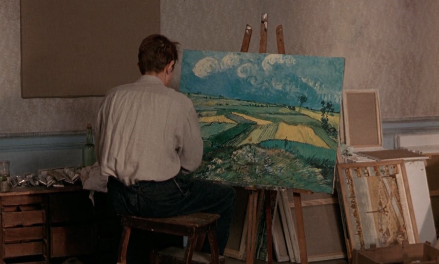 โดยปกติแล้ว Van Gogh จะเดินทางไปยังสถานที่จริง แต่ช็อตนี้กลับกำลังวาดภาพ Wheat Fields at Auvers Under Clouded Sky (1890) ภายในห้องเช่าโรงแรม ห้อมล้อมรอบด้วยผนังกำแพง ราวกับต้องการสื่อถึงภาพแห่งจินตนาการ สรวงสวรรค์ที่อยากให้เป็น