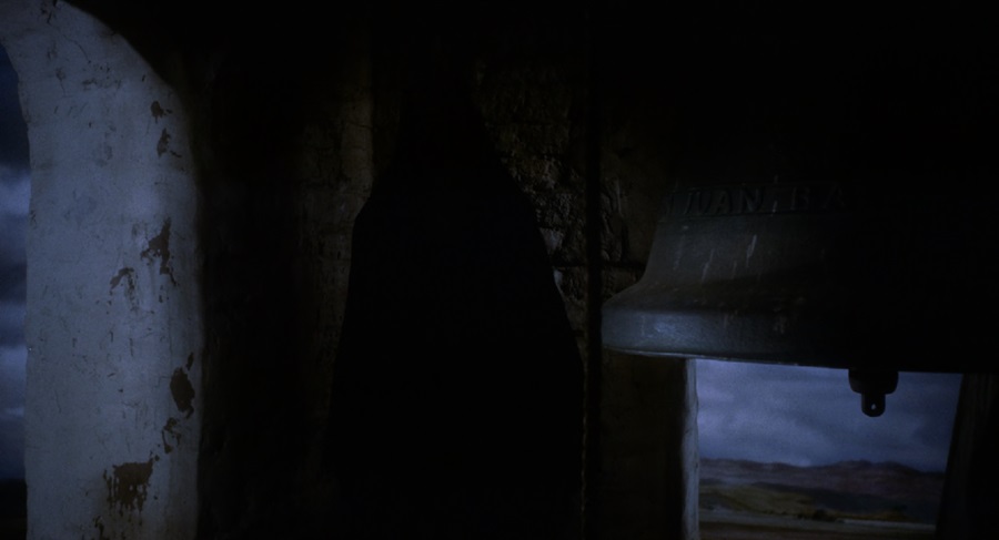 โดยไม่รู้ตัว Scottie แอบสานสัมพันธ์ ตกหลุมรัก Medeleine พากันเดินทางไปท่องเที่ยวชม Mission San Juan Bautista (บ้านเกิดของ Carlotta) แล้วจู่ๆหญิงสาววิ่งขึ้นหอระฆัง Scottie ที่ล้มป่วยโรคกลัวความสูง ไม่สามารถปีนป่าย ตะเกียกตะกายขึ้นสู่เบื้องบน ก่อนพบเห็นเธอพลัดตกลงมาเสียชีวิต กลายเป็นภาพติดตา ตราบาปฝังใจ ตกอยู่ในสภาพห่อเหี่ยว หมดสิ้นหวังอาลัย