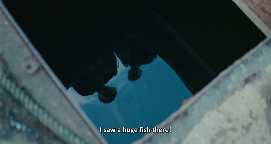 ภาพนี้ของ The Return (2003) คือขณะที่สองพี่น้อง Ivan และ Andrei กำลังออกหาปลา มาถึงยังบริเวณซากเรืออับปาง แล้วพบเจอบ่อแห่งนี้ที่มีปลาชุกชุม ตกเบ็ดได้สำเร็จ ตัวขนาดใหญ่ทีเดียว แต่เมื่อนำไปให้กับบิดา พวกเขากลับถูกตำหนิต่อว่า และนำไปสู่เหตุการณ์โศกนาฎกรรม … ผมสังเกตมาหลายเรื่องแล้ว ภาพยนตร์จากรัสเซีย พบเห็นช็อตบ่อน้ำเมื่อไหร่ มักอารัมบทความตายทุกที!