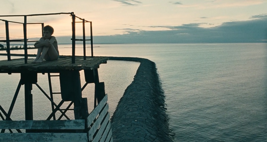 ฉันนั่งตกปลาอยู่ริมตลิ่ง! ภาพแรกถ่ายยามเย็น เห็นสองพี่น้องนั่งเคียงข้าง แม้ท่ามกลางความมืดมิด (ถ่ายแบบย้อนแสง) แต่กลับรู้สึกอบอุ่นจิตใจ, ภาพหลังยามรุ่งเช้าเหลือเพียง Ivan นั่งโดดเดี่ยว ตัวคนเดียว เปล่าเปลี่ยวจิตวิญญาณ ท่ามกลางธรรมชาติกว้างใหญ่ ไม่สนใจช่วยเหลือบิดาและพี่ชายที่กำลังเก็บเต้นท์พักอาศัย
