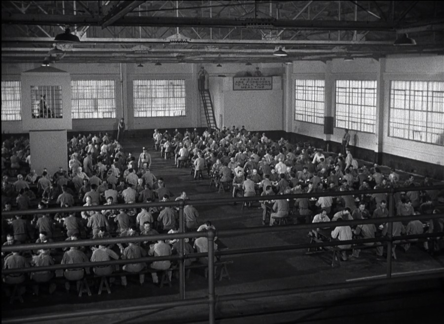 นี่เป็นซีเควนซ์สิ้นเปลืองโดยใช่เหตุ ความยาวแค่สามนาที แต่ต้องใช้ตัวประกอบมากถึง 600 คน! ผู้บริหาร Jack Warner พยายามต่อรองให้ตัดฉากนี้ทิ้ง “cost of a single scene with 600 extras and only one line of dialogue would be exorbitant.” แต่หลังจากช่วยกันระดมสมอง ก็พบว่าไม่มีสถานที่อื่นใดหลังจาก Cody รับรู้ความตายมารดา แล้วสามารถถูกล้อมจับกุม และอีกเป้าหมายหนึ่งคือต้องการสร้างเสียงน่ารำคาญ มีด-ช้อน-ส้อม ผู้คนซุบซิบนินทา แล้ว(Cody รับรู้ความตายมารดา)ทุกสิ่งอย่างพลันเงียบสงัด ก่อนส่งเสียงกรีดร้องคลุ้มคลั่งอย่างไม่มีใครคาดคิดถึง … ซีเควนซ์นี้ถูกตั้งชื่อว่า ‘The Telephone Game’ เพราะนักโทษมีกระซิบกระซาบต่อกันเป็นทอดๆ