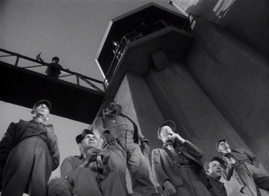 [Lang] directs the setting up of the camera instead of leaving it largely to the photographer. Thus far the camera has not rested once on a stationary tripod, always being mounted on a crane, and when the characters aren’t moving, the lens is.