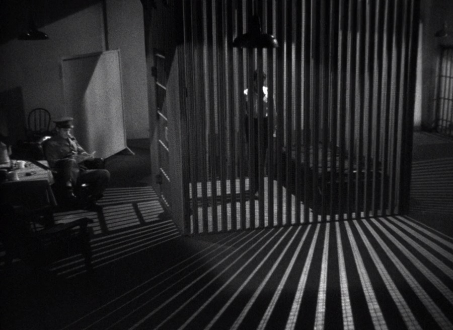 แสงสว่างลอดผ่านบานเกร็ด พบเห็นเงาเลือนลางที่แลดูเหมือนลูกกรง ราวกับตัวละครถูกกักขัง ไม่สามารถหาหนทางหลบหนี/แก้ปัญหาเหตุการณ์บังเกิดขึ้นขณะนี้ … นี่คือหนึ่งในลายเซ็นต์หนังนัวร์ แต่เอาจริงๆลูกเล่นดังกล่าวพบเจอมาตั้งแต่ยุคหนังเงียบ ผกก. Lang เคยถ่ายภาพลักษณะนี้มาตั้งแต่ German Expressionism